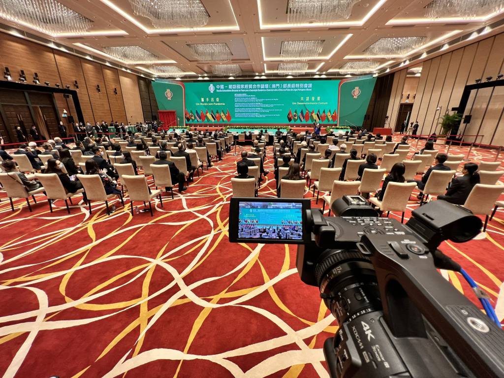 中國─葡語國家經貿合作論壇部長級特別會議 26/04/2022 MacBroadcast由國家商務部主辦、澳門特區政府承辦,中國——葡語國家經貿合作論壇(澳門)常設秘書處協辦的中葡論壇部長級特別會議於2022年4月10日成功舉辦。此次特別會議以線上+線下形式於北京、澳門兩地舉行,主會場設在澳門中葡商貿合作服務平台綜合體。*央視總台澳門記者站拍攝的現場畫面受央視總台的邀請,我司參與此次總台澳門記者站的會議現場拍攝工作。*我司在會議現場拍攝的工作照