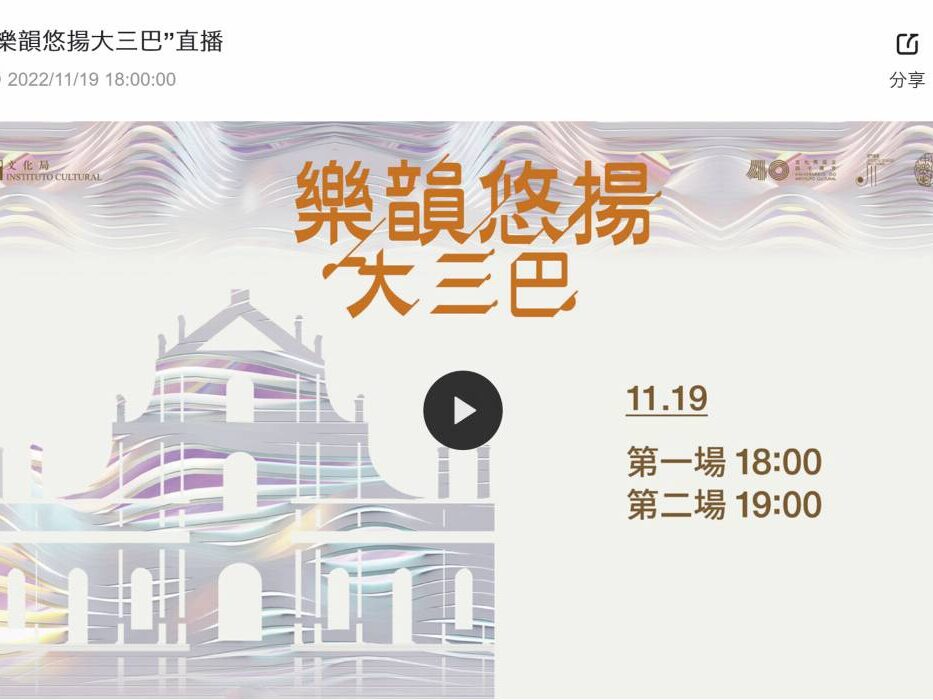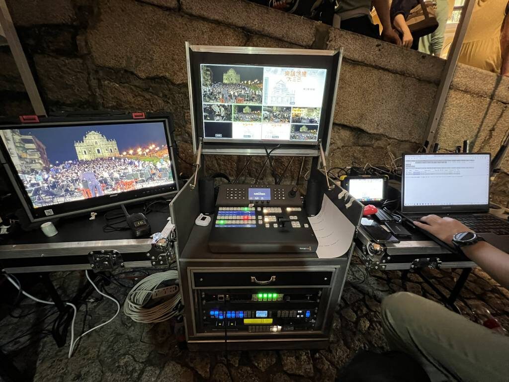 樂韻悠揚大三巴 23/11/2022 MacBroadcast由澳門文化局主辦的“樂韻悠揚大三巴”活動,11月19日在大三巴繼續上演,澳門中樂團呈獻了《萬水千山總是情》、《青花瓷》、《Merry Christmas, Mr. Lawrence》等多首經典悅耳的曲目,以絲竹樂韻與觀眾一同打造獨特的音樂體驗。活動結合音樂演出與世界文化遺產景點的魅力,吸引眾多市民旅客駐足觀演。*澳門中樂團我司負責活動現場多機位拍攝製作,以及活動全程網絡直播。*現場多機位拍攝*活動導控區*活動導播台*活動直播頁
