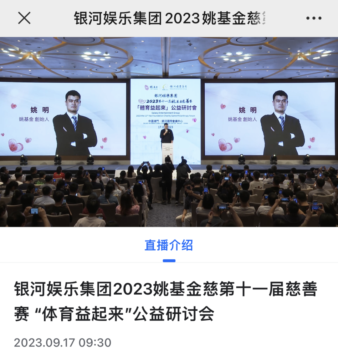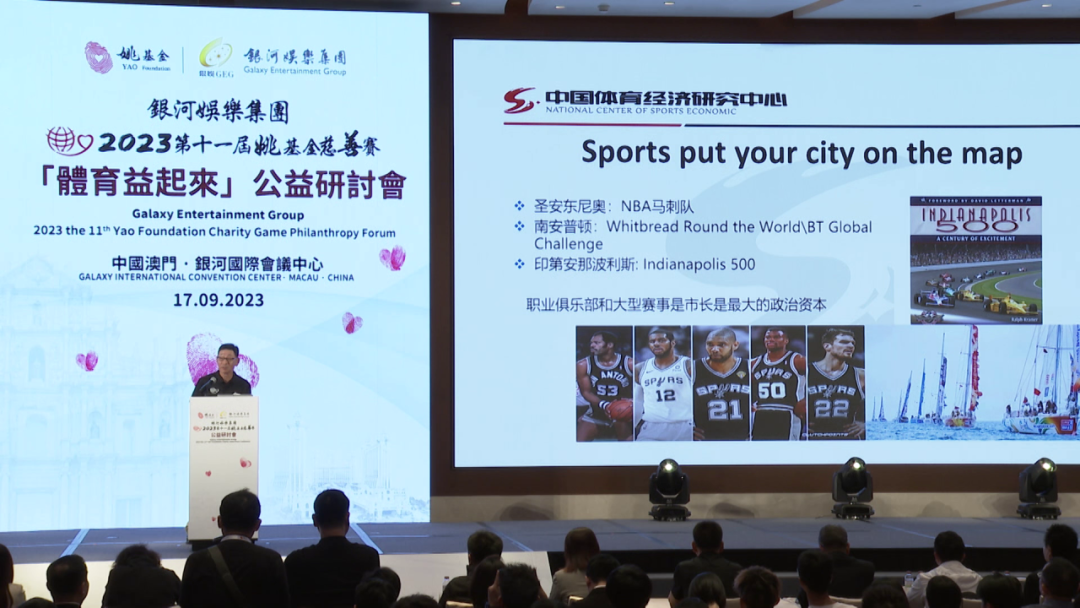“2023第十一屆姚基金慈善賽公益研討會”於9月17日早上十時在澳門銀河國際會議中心舉行,會議邀請了來自北京體育大學中國體育政策研究院、奧運冠軍王軍霞、體操冠軍陳一冰等多位專家學者,圍繞體育助力青少年與社區發展的議題展開高層對話。來自體育、公共衛生、公益、傳媒等多個領域的專家學者將齊聚一堂,共同探討“姚基金慈善賽”、“體育+公益”的未來發展。