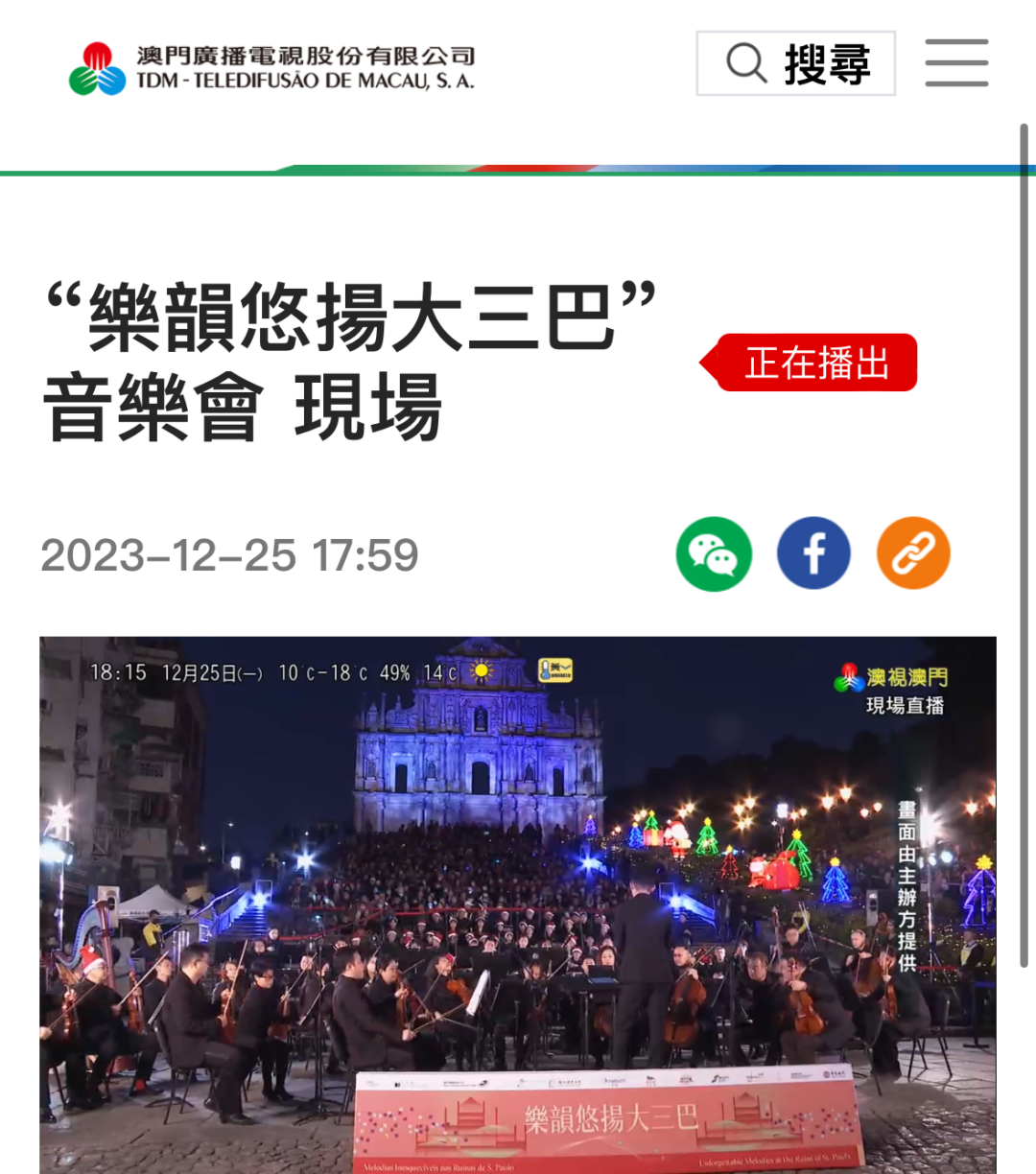*澳門文化局Facebook直播頁面