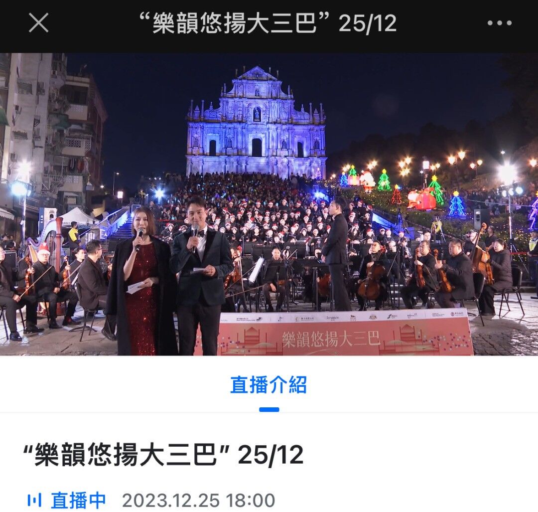 我司負責音樂會多機位拍攝製作,以及活動全程網絡直播。音樂會在澳廣視91台、澳門文化局和澳門樂團的Facebook及微信公眾號全程直播。