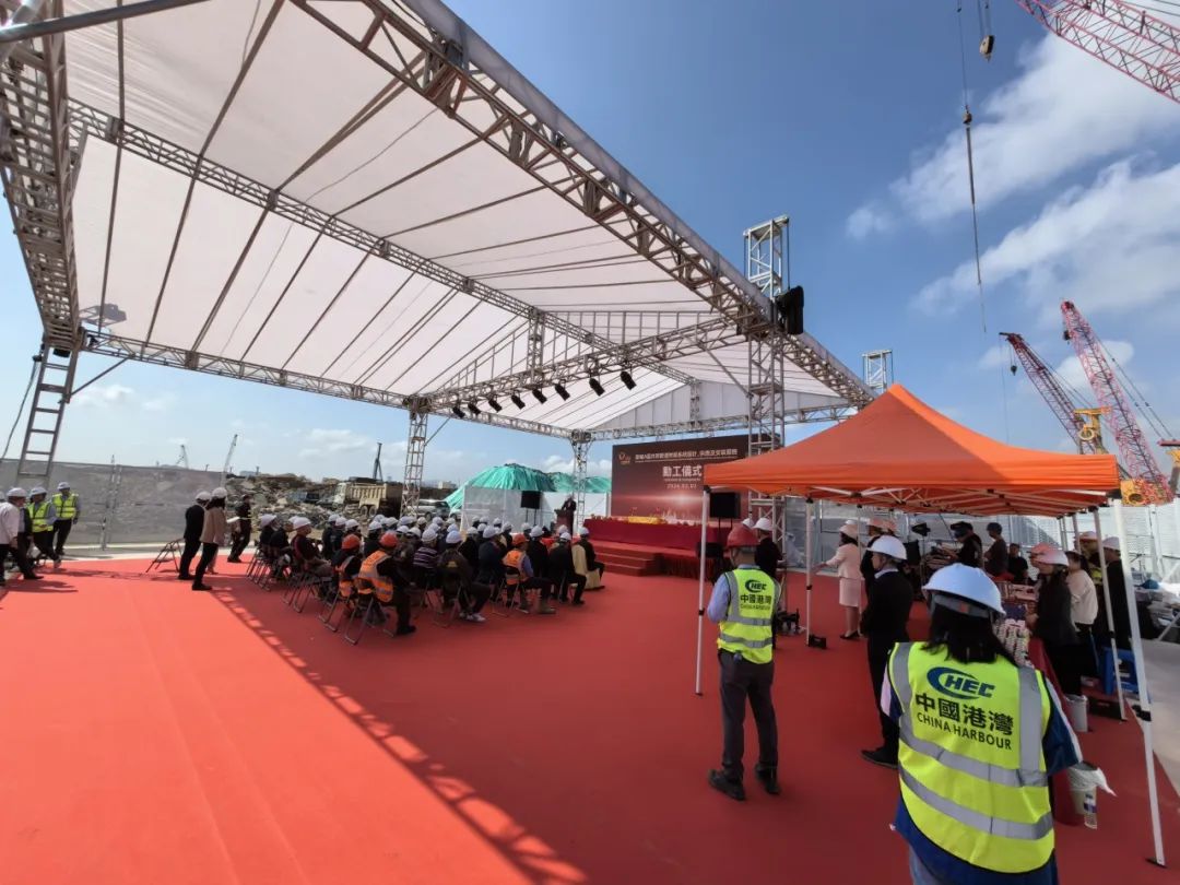 *主禮嘉賓-澳門特別行政區公共建設局局長 林煒浩、環境保護局副局長 許志樑、澳電執行委員會主席 梁華權、中國港灣工程有限責任公司副總經理 劉寶河