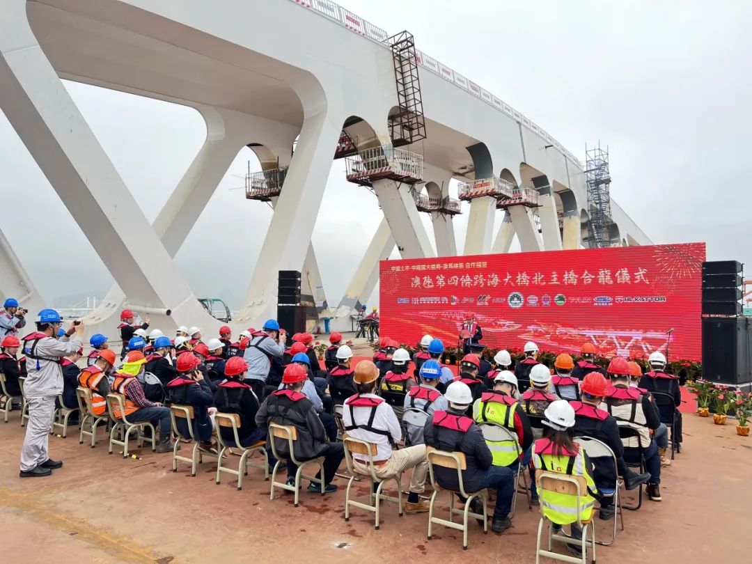 澳氹第四條跨海大橋北主橋合龍儀式 01/03/2024 MacBroadcast1月31日,由中國土木、中國鐵建大橋局、澳馬建築聯營體承建的澳氹第四條跨海大橋項目北主橋鋼樑順利合龍,合龍儀式於2月1日上午在四橋北主橋項目工地舉辦。*合龍儀式場地我司負責合龍儀式現場LED大屏、音響系統,以及活動整體設計。*合龍儀式現場