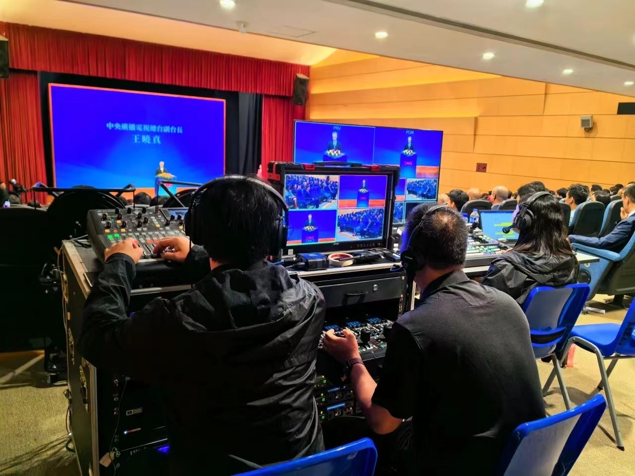 我司負責活動整體統籌,現場多訊道廣播級電視信號製作、公關禮儀服務以及場地物料製作搭建。