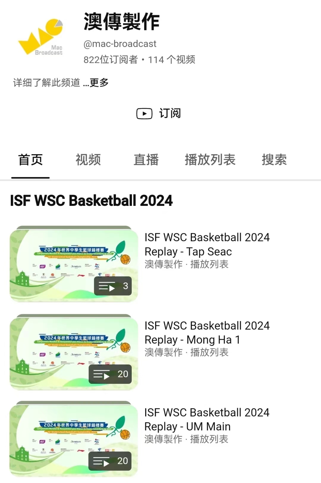 由國際中學生體育聯合會主辦,澳門教育及青年發展局承辦的2024年世界中學生籃球錦標賽於2024年6月24日至7月2日在澳門舉行,來自20個國家和地區的37支隊伍齊聚澳門角逐錦標。